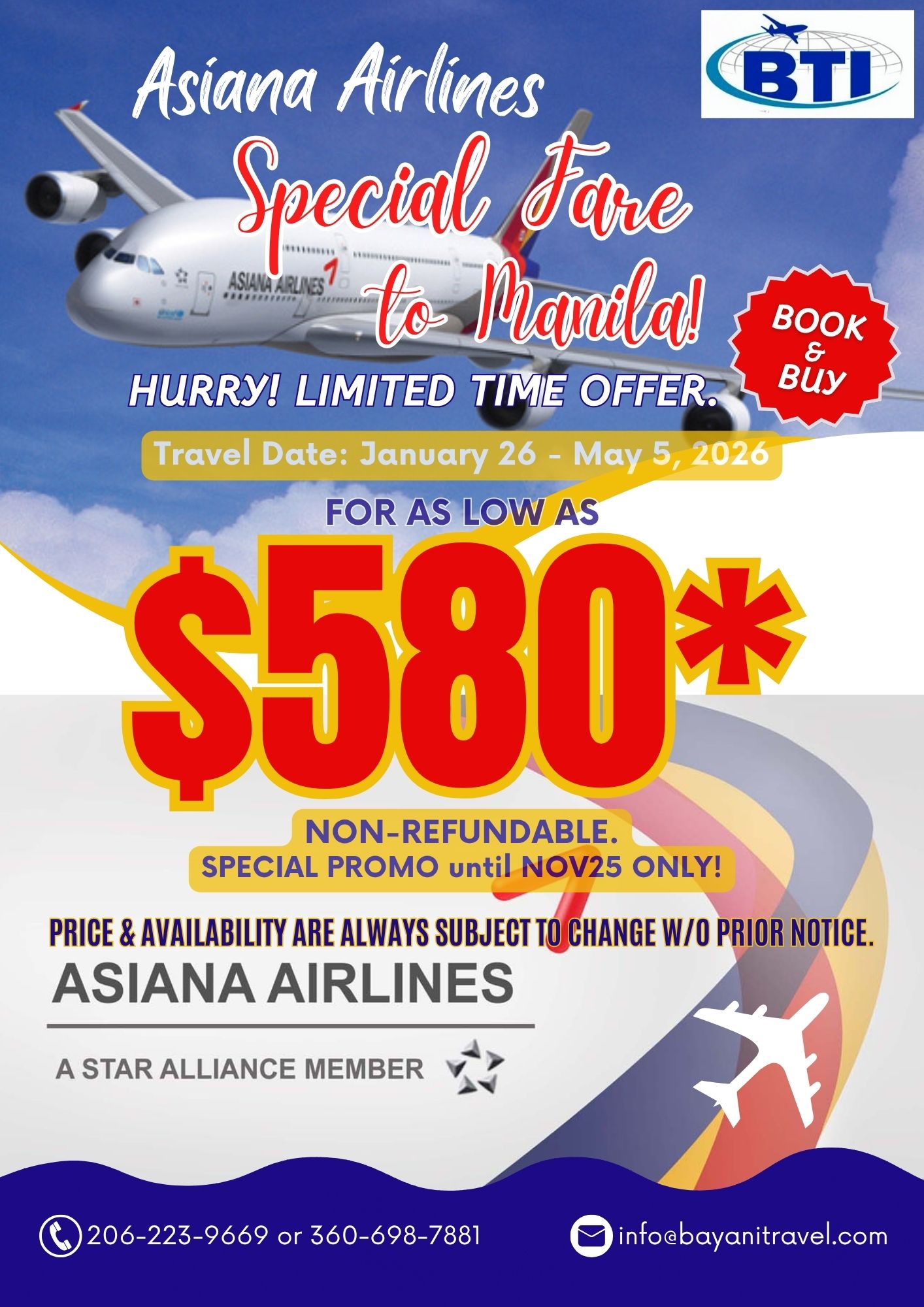 I want to extend my appreciation to one your agent/ staff Grace ... I have to let her change my iterinary several times because of the expired passport and in need to be home to attend my mothers funeral. She was so patient. Hoping you have to keep her forever because she is so nice and helpful. More power to Bayani Travel